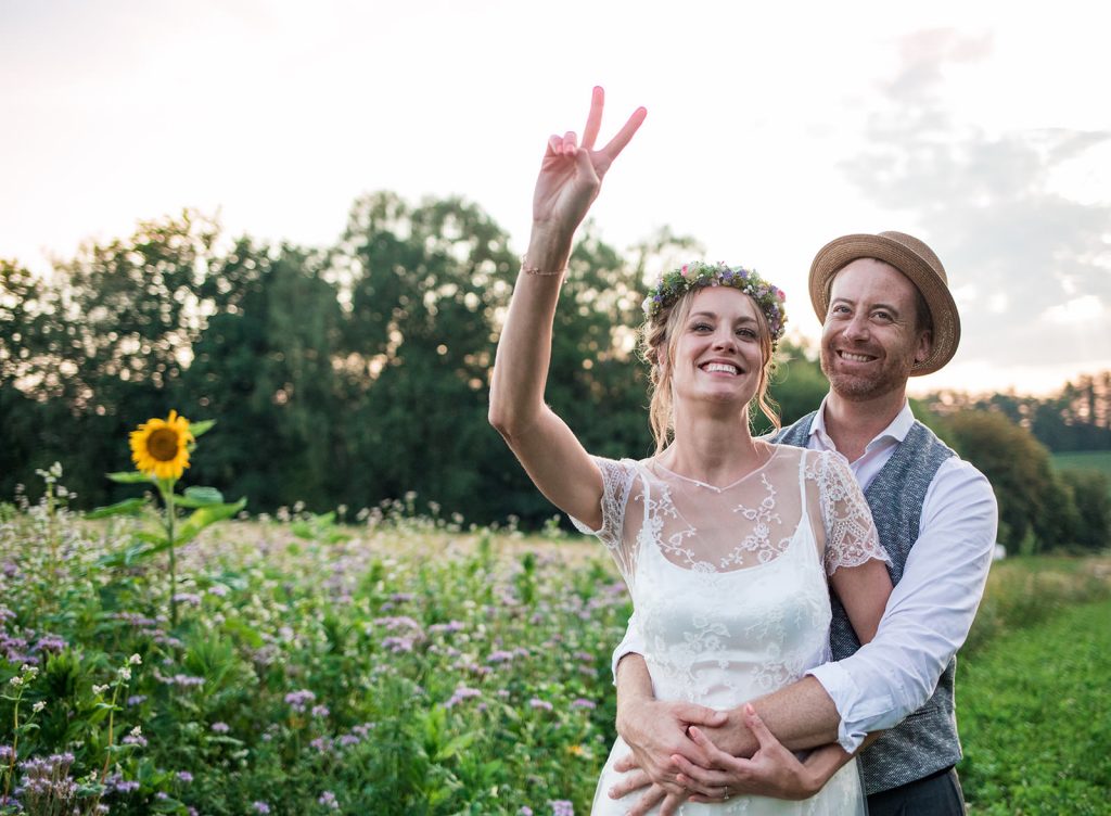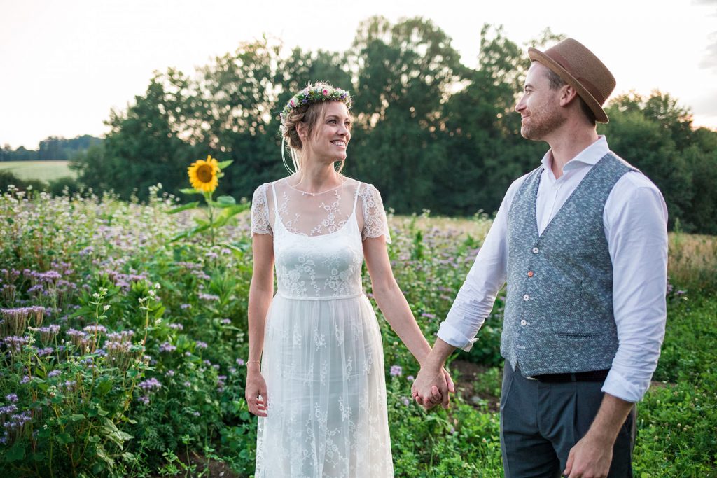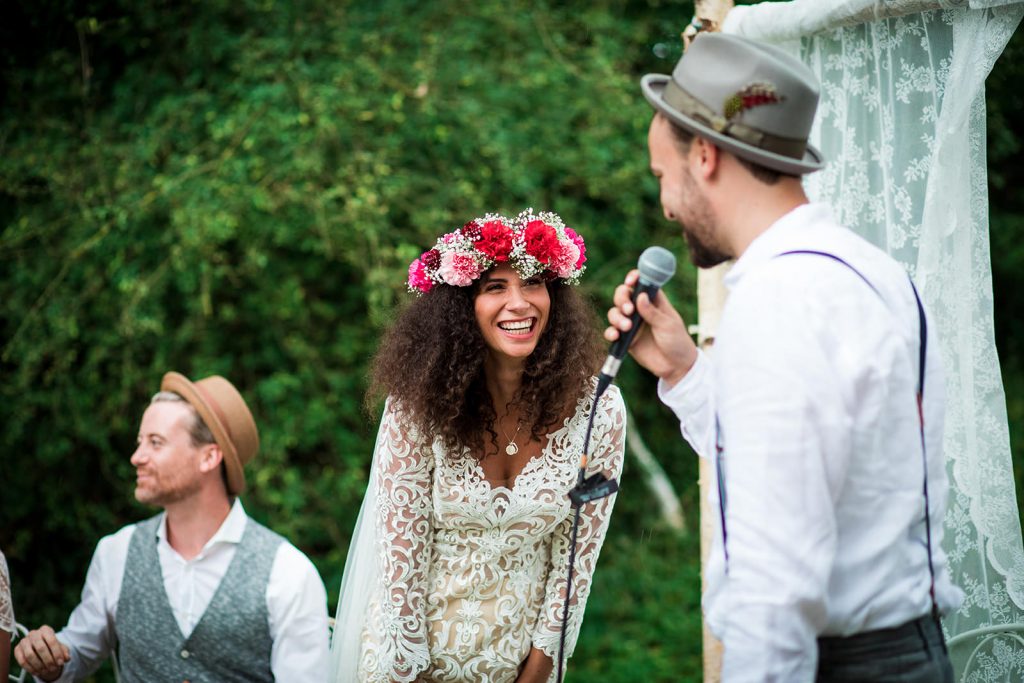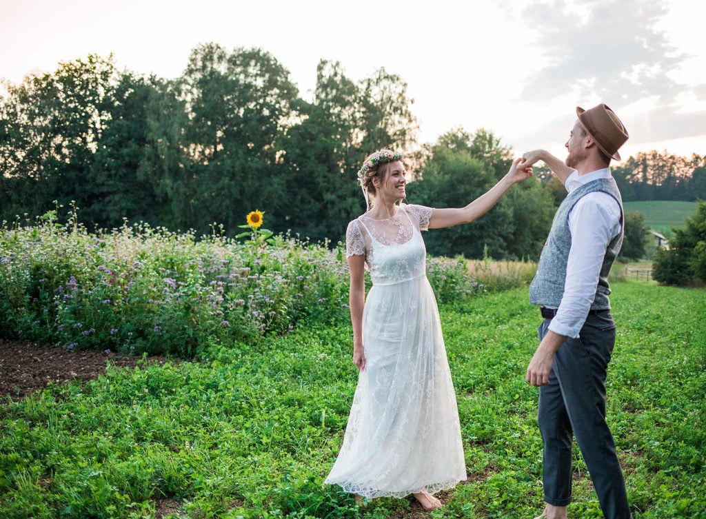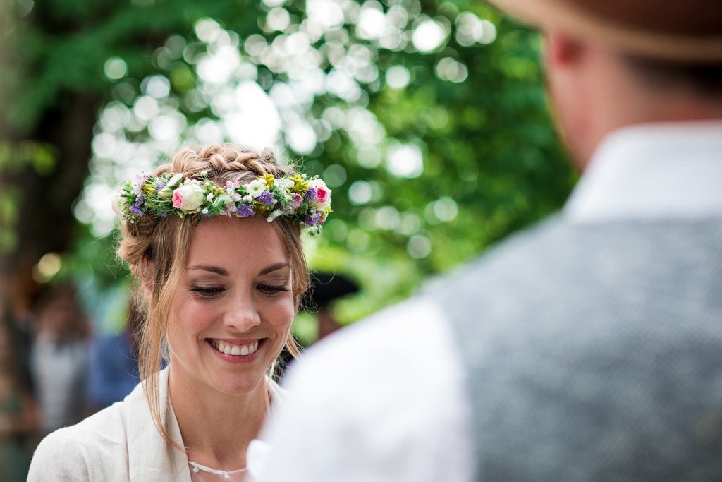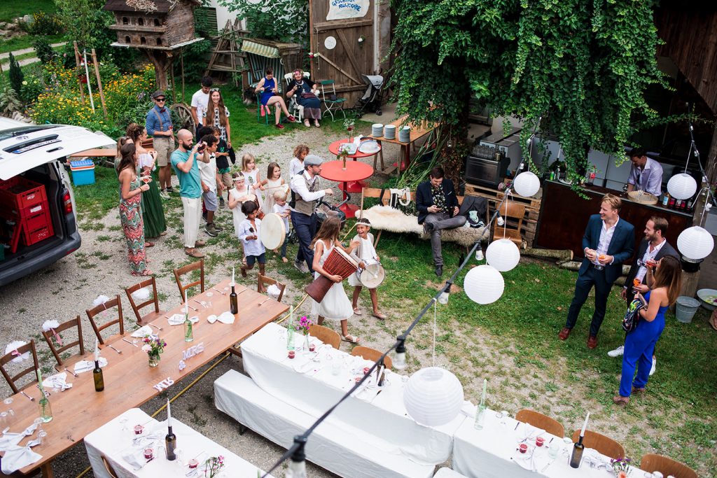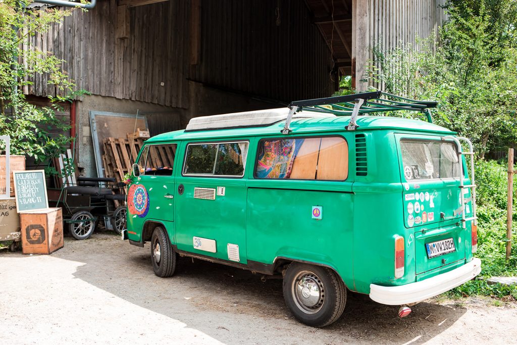 It was a true hippie wedding. Wild flowers, children, camper van’s, country air, farm animals, shoes off and lots of dance and laughter. A lot of talented friends and family helped out to make it the perfect day. A friend of Benjamins rents out the farm but it has only recently started being used as a wedding venue. Benjamin also is the manager of a sound company so the evening entertainment was sorted with super sound and the best of Munich’s Raggae and Hip-Hop DJ friends.