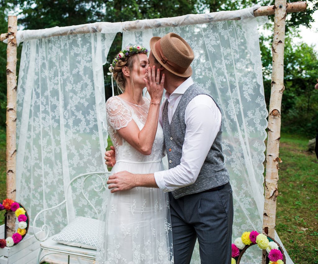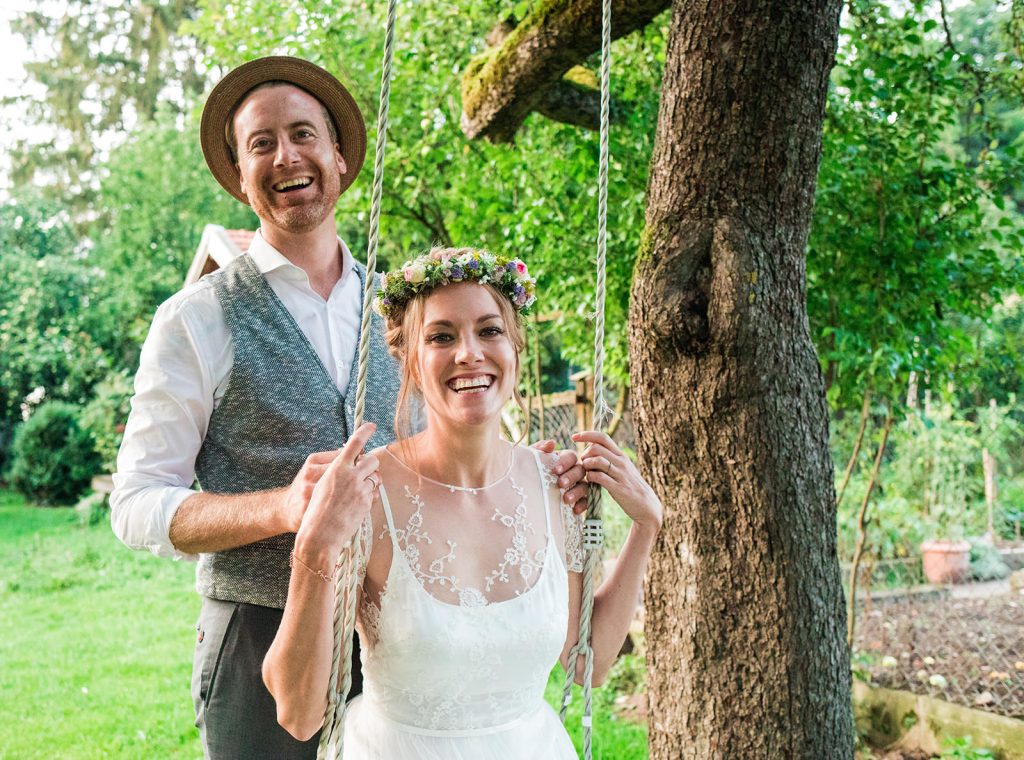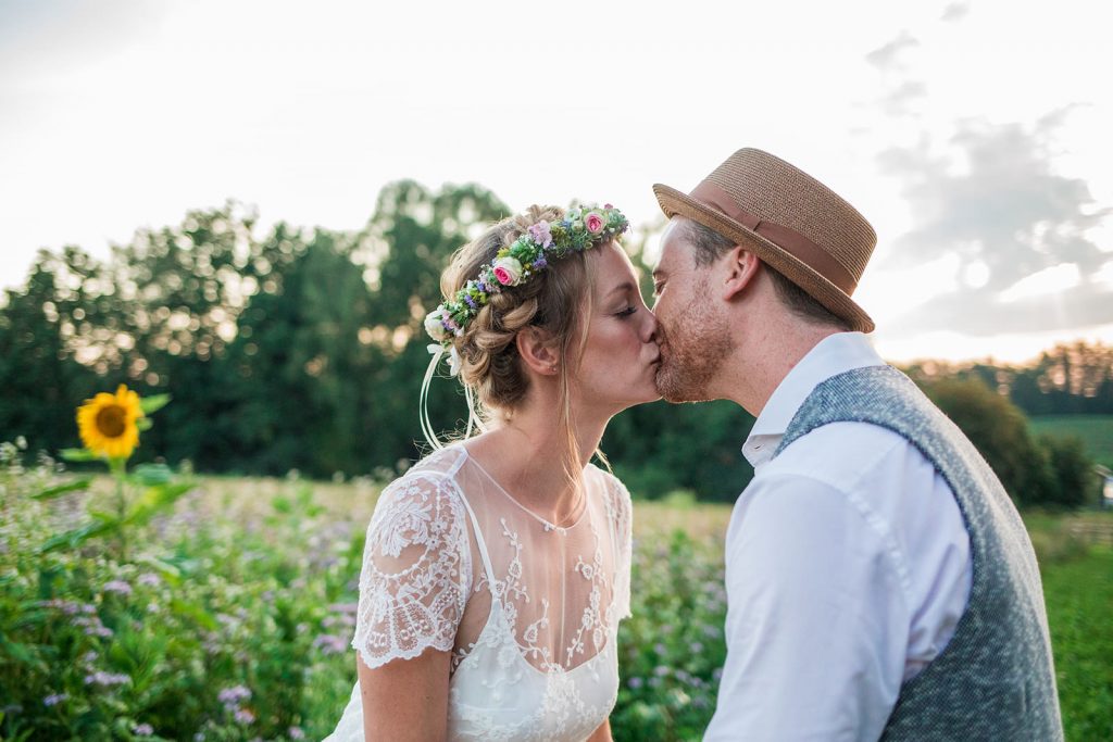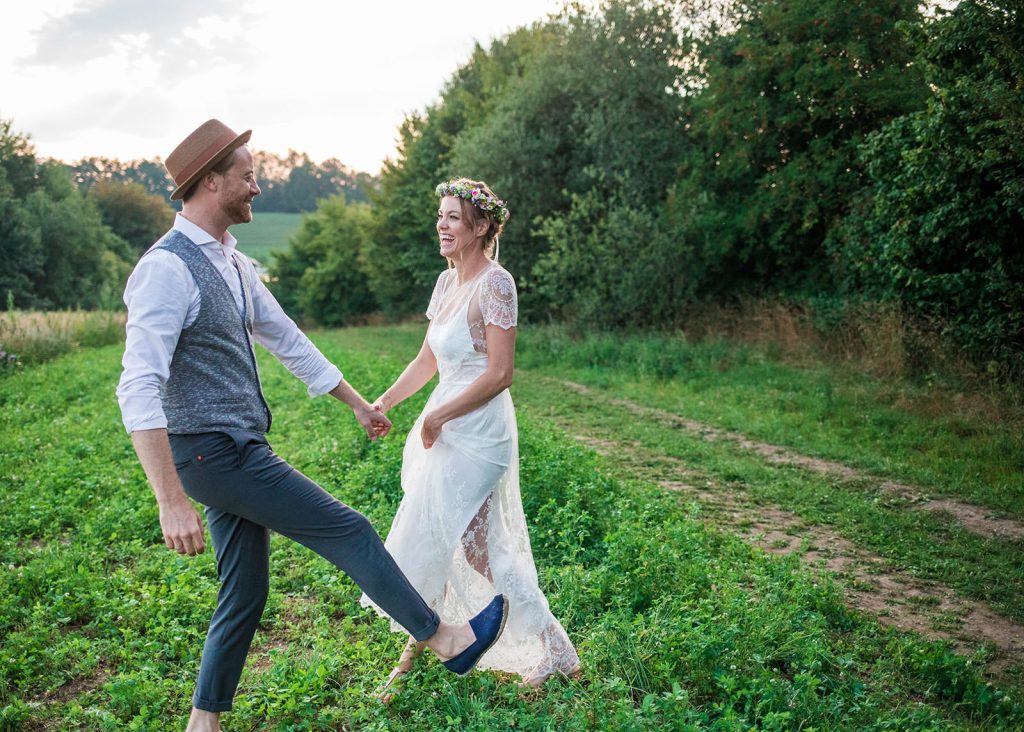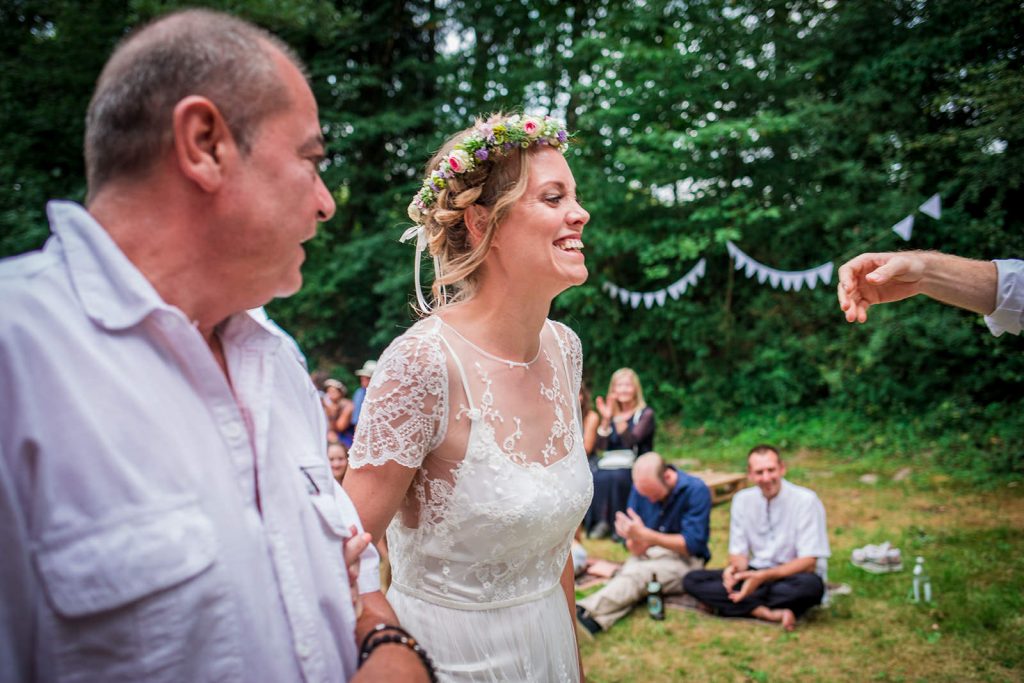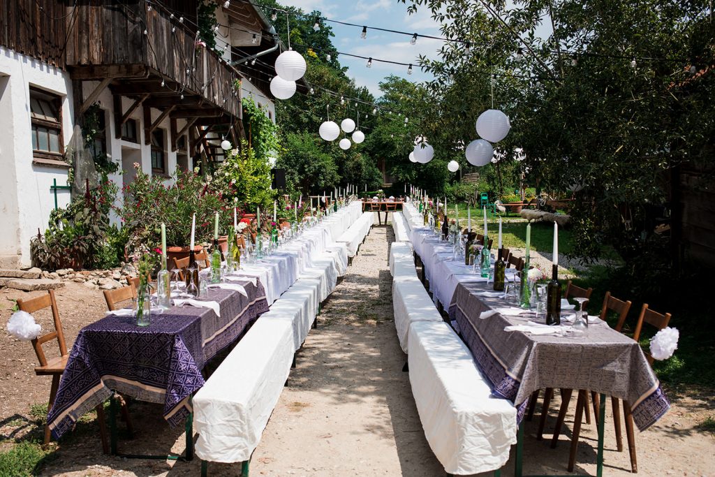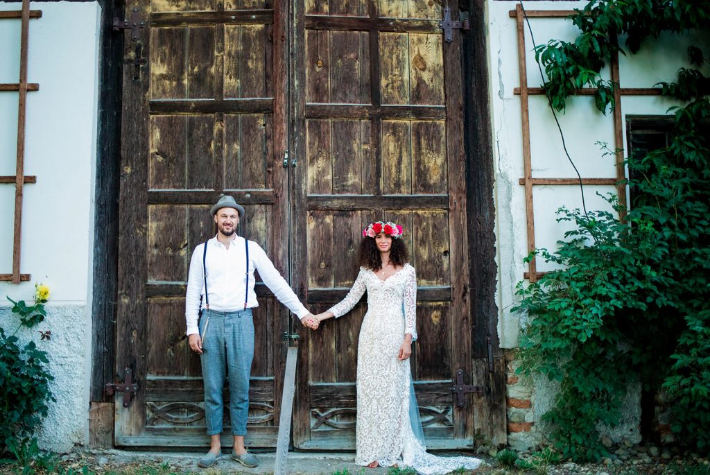 It was a true hippie wedding. Wild flowers, children, camper van’s, country air, farm animals, shoes off and lots of dance and laughter. A lot of talented friends and family helped out to make it the perfect day. A friend of Benjamins rents out the farm but it has only recently started being used as a wedding venue. Benjamin also is the manager of a sound company so the evening entertainment was sorted with super sound and the best of Munich’s Raggae and Hip-Hop DJ friends.