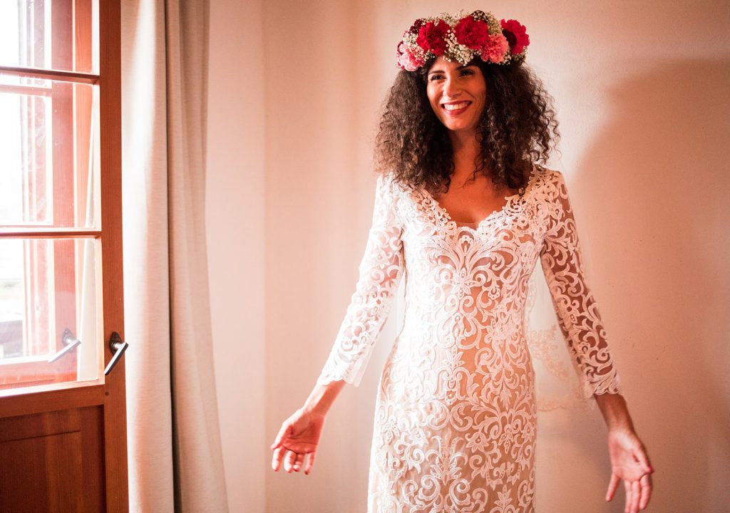 Vanessas and Sandra’s stunning dresses where both personally designed and hand made. To save some money they chose their flowers at the flower market and arranged them themselves on the table along with some super simple and beautiful white cloth napkins, home made jam as give aways and old wine bottles with white dripping candles. When they got lit together with the lanterns it made the atmosphere just perfect.