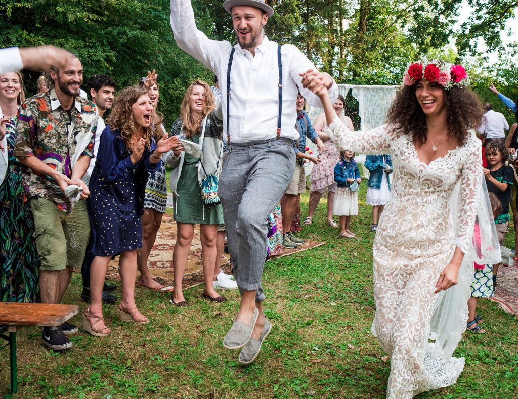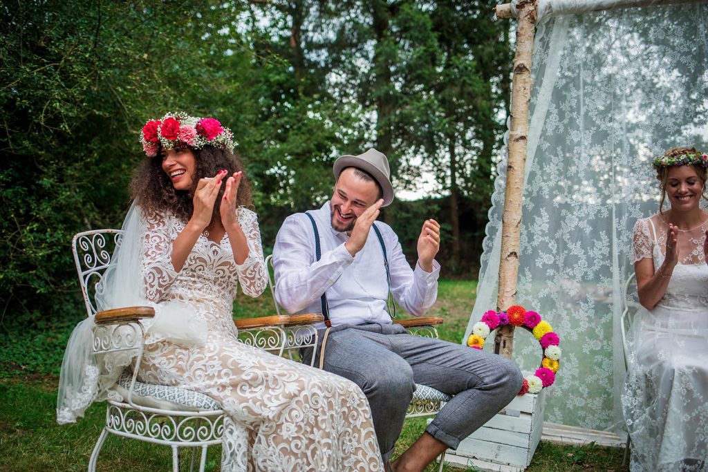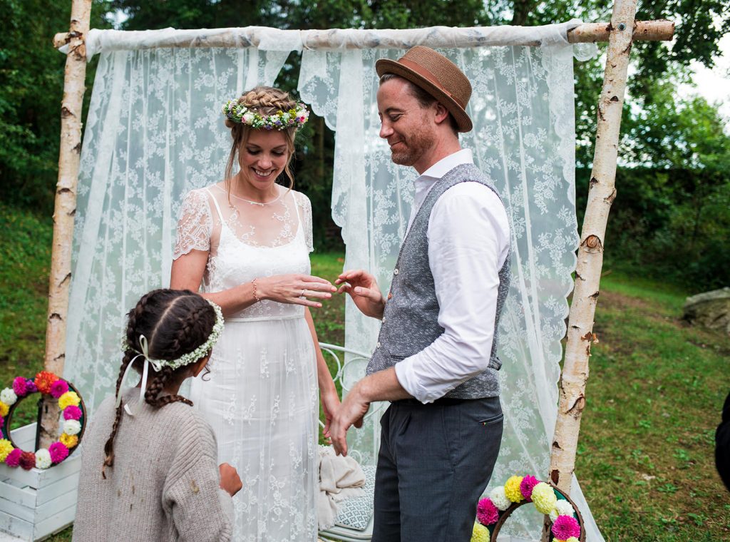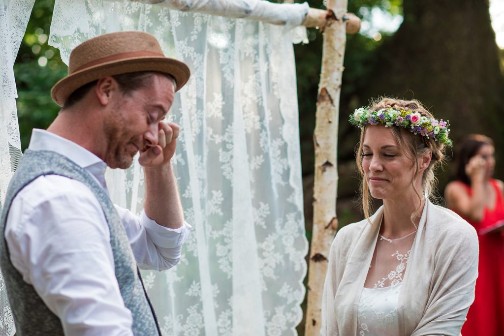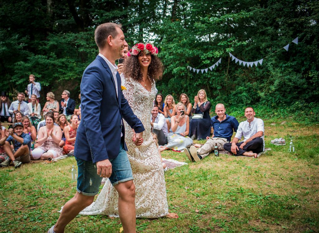 Instead of a traditional German wedding, they decided to have a humanist ceremony, led by their friends. Everyone sat on carpets and a lot of tears of happiness where shed.