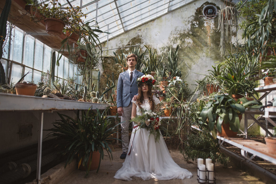 Today on the blog a stylish greenhouse wedding shoot submitted by Katja and Simon. They prepared a wedding styled photoshoot in a beautiful botanical garden / greenhouse in Sezana, Slovenia.